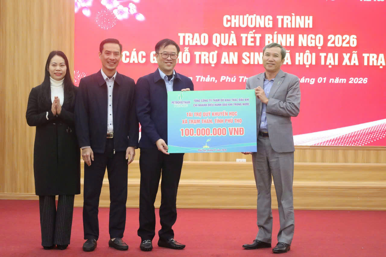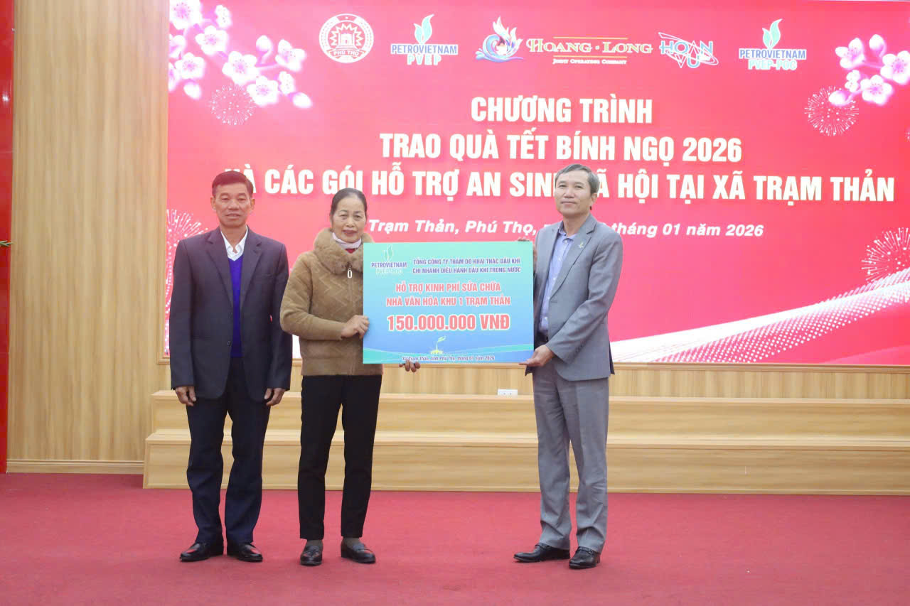 Ngày 22 tháng 01 năm 2026, xã Trạm Thản phối hợp với Tổng Công ty thăm dò khai thác dầu khí, Công ty Hoàn Long - Hoàn Vũ, tổ chức Chương trình trao quà Tết Bính Ngọ cho hộ nghèo, cận nghèo, hộ có hoàn cảnh khó khăn năm 2026, tặng các gói hỗ trợ an sinh xã hội trên địa bàn và cắt băng khánh thành công trình: Xây dựng khối phòng phục vụ học tập và hành chính quản trị Trường Tiểu học Trạm Thản.
