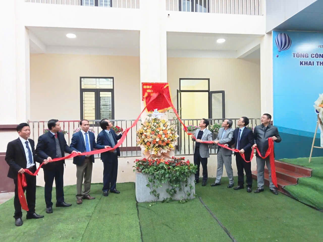 Tiếp đó các đơn vị tài trợ đã đến dự Lễ cắt băng khánh thành công trình: Xây dựng khối phòng phục vụ học tập và hành chính quản trị Trường Tiểu học Trạm Thản, tiếp thêm động lực để các em học sinh vươn lên trong học tập và cuộc sống.