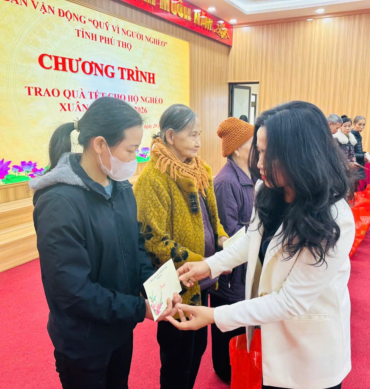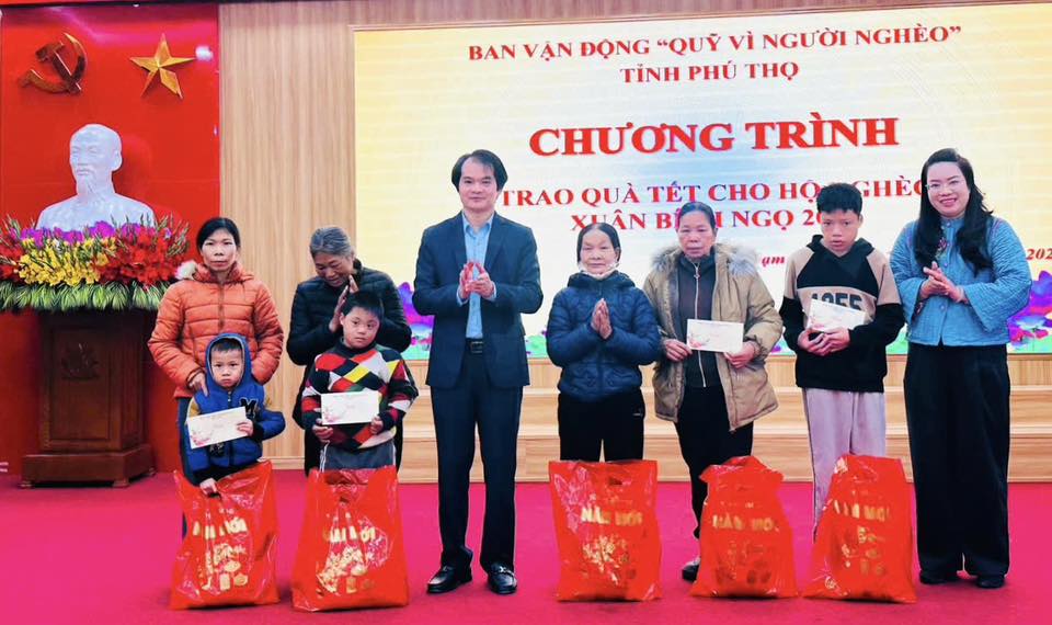 Nguồn kinh phí trích từ “Qũy vì người nghèo” của Ban vận động UBMTTQ tỉnh. Dự và trao tặng các phần quà có đ/c Nguyễn Hồng Nhung- UVBCHĐB tỉnh, Phó CT UBMTTQ Việt Nam tỉnh, chủ tịch Hội LHPN tỉnh Phú Thọ; đ/c Nguyễn Quang Vinh - Bí thư ĐU, chủ tịch HĐND xã, các đ/c UVBTVĐU, lãnh đạo các phòng, ban, ngành của xã. Chương trình trao quà là những tình cảm ấm áp, thắm tình đoàn kết, kịp thời động viên các đối tượng đặc biệt khó khăn trên địa bàn xã nhất là mỗi dịp Tết đến Xuân về./.
