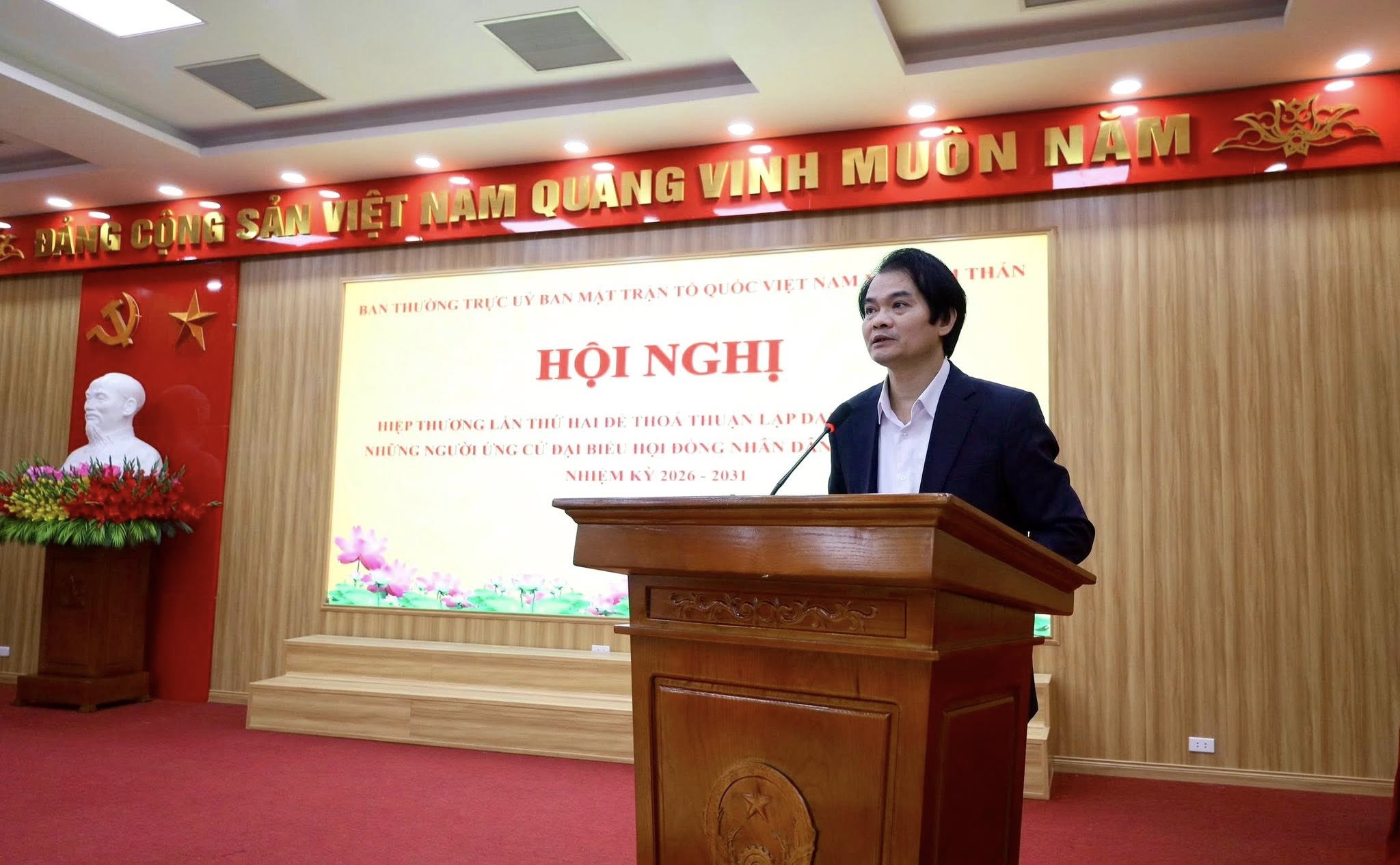 - Hội nghị thông qua kế hoạch lấy ý kiến tín nhiệm của những người ứng cử nơi công tác và nơi cư trú bắt đầu từ ngày 4/02/2026 đến ngày 8/02/2026.