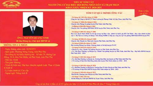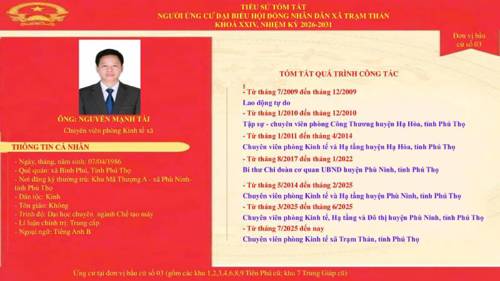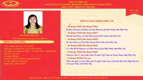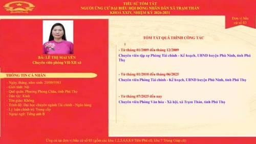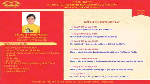 Danh sách những người ứng cử đại biểu HĐND xã Trạm Thản nhiệm kì 2026 - 2031 theo từng đơn vị bầu cử.