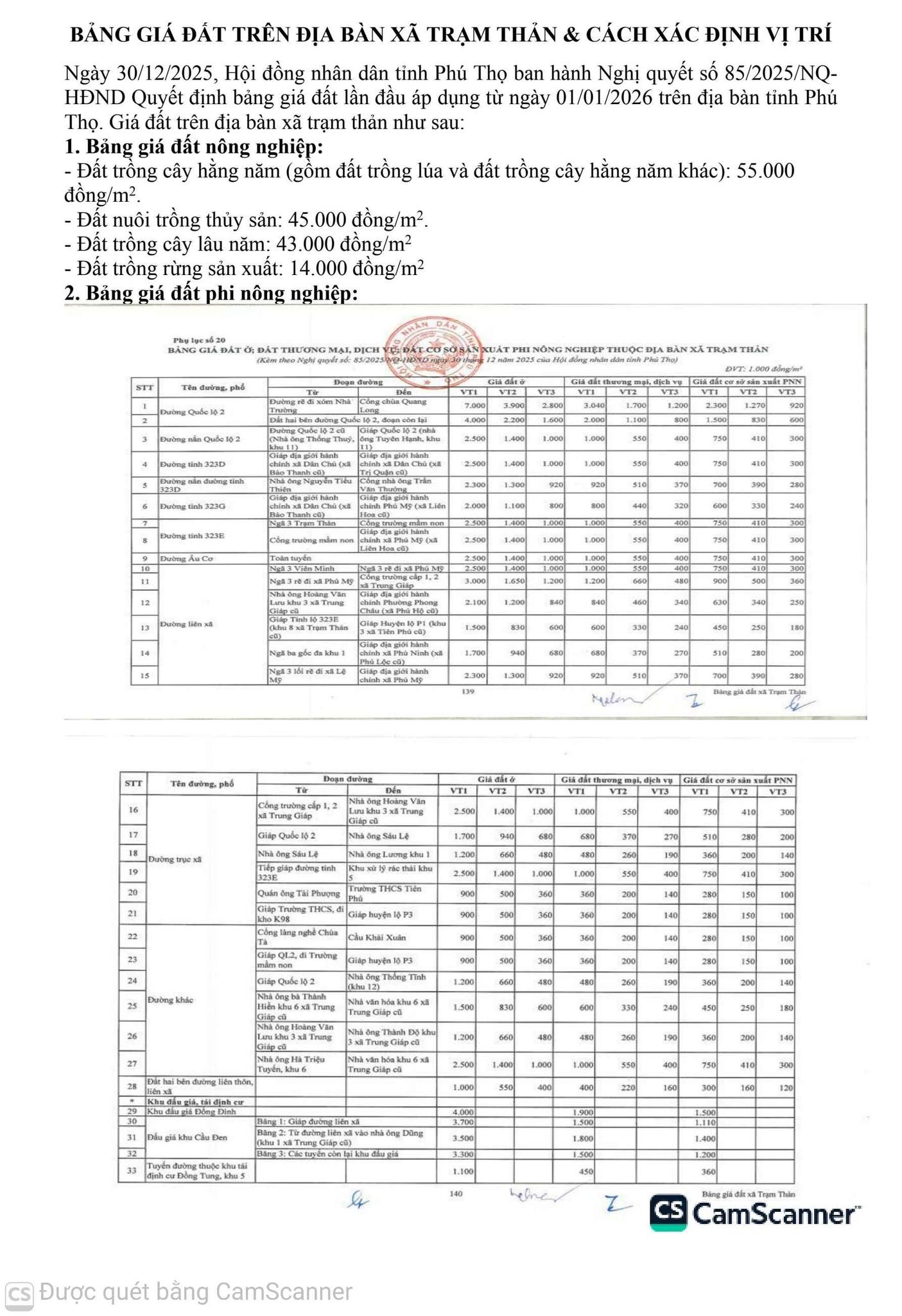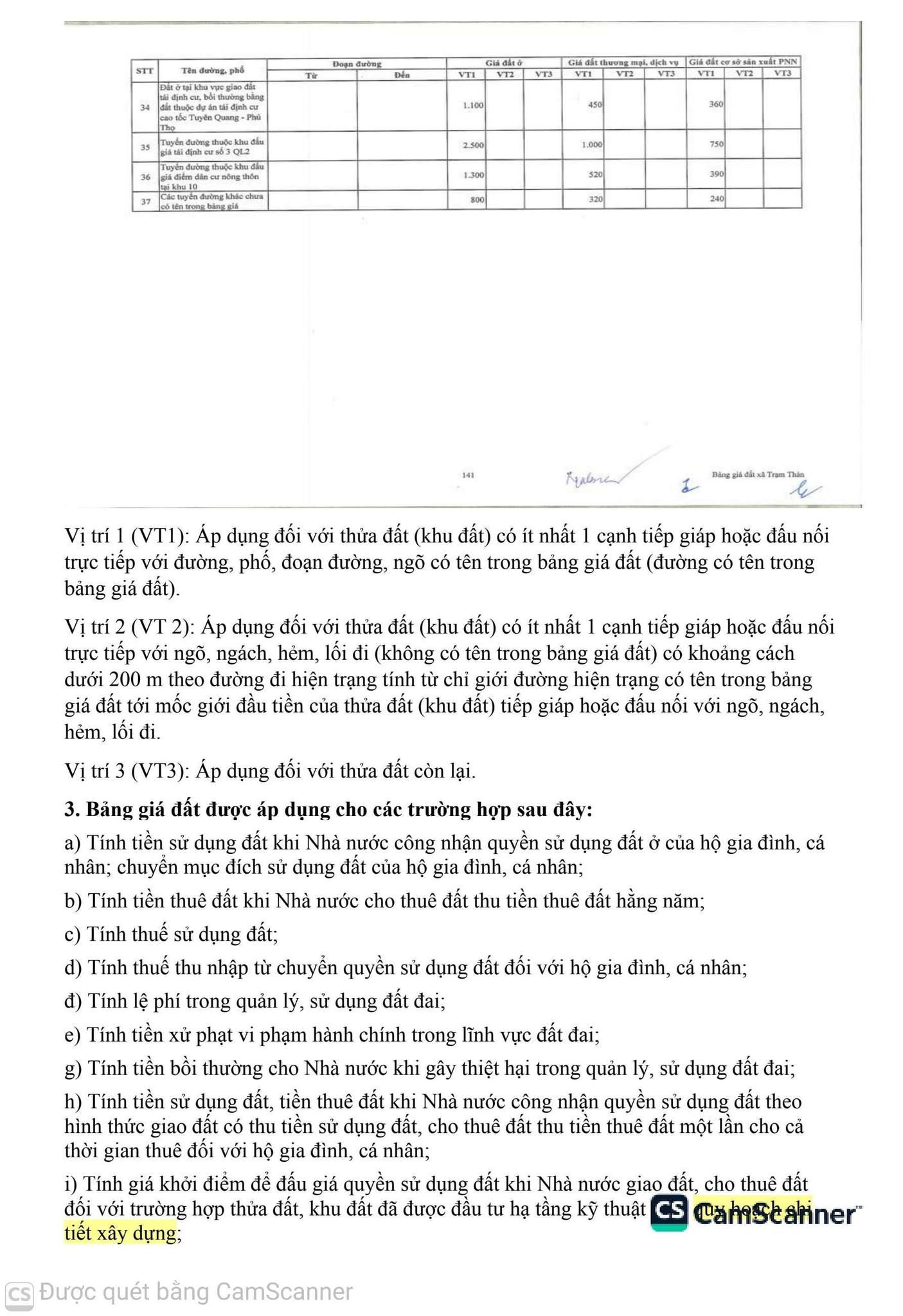 UBND XÃ THÔNG BÁO HƯỚNG DẪN Bảng giá đất trên địa bàn xã Trạm Thản & cách xác định vị trí.