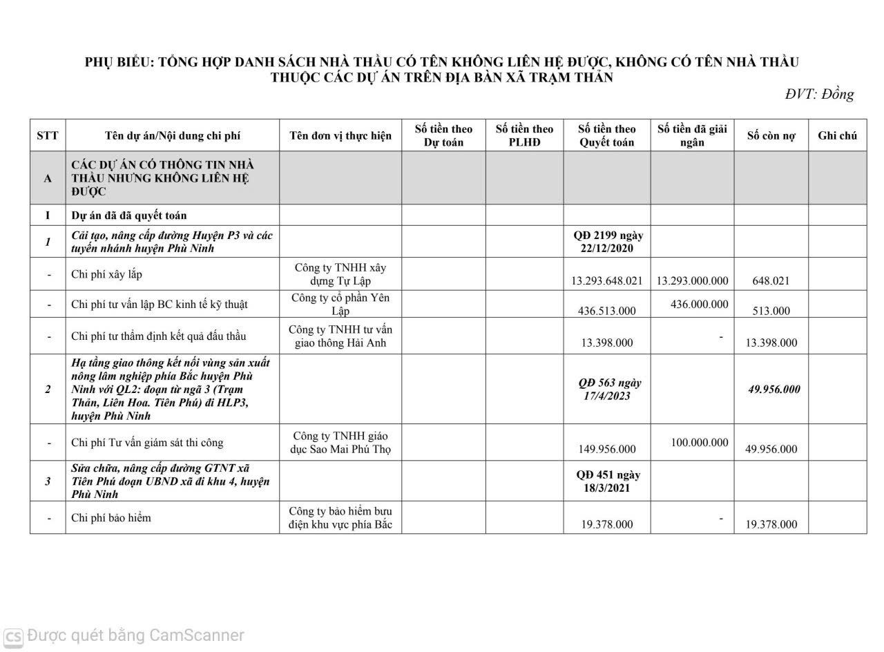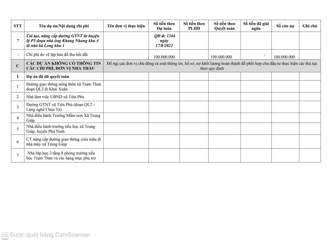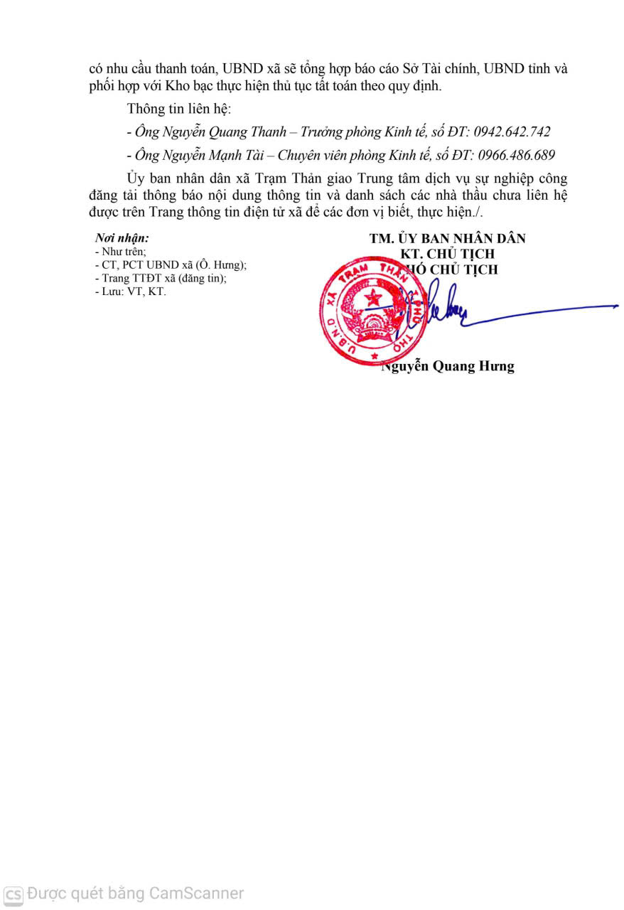 THÔNG BÁO LẦN 2 CỦA UBND XÃ TRẠM THẢN về Thanh toán khối lượng đầu tư xây dựng cơ bản các dự án do UBND xã Trạm Thản làm chủ đầu tư