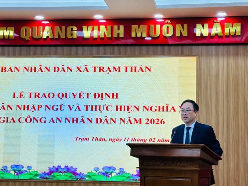 Thực hiện chương trình công tác, chiều 11/02/2026. Ủy ban nhân dân xã tổ chức Lễ công bố quyết định gọi công dân nhập ngũ & thực hiện nghĩa vụ tham gia công an nhân dân năm 2026.