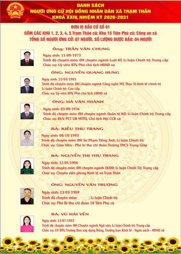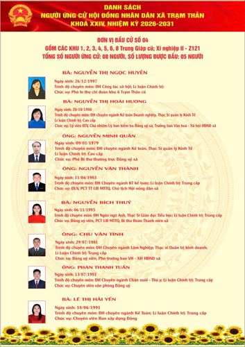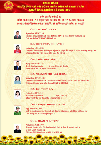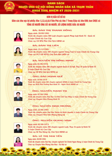 Danh sách 23 khu vực bỏ phiếu bầu cử đại biểu Quốc hội khoá XVI và đại biểu Hội đồng nhân dân các cấp, nhiệm kỳ 2026-2031 trên địa bàn xã Trạm Thản.