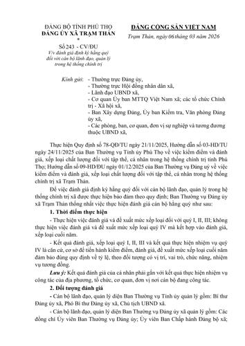 ĐU xã Trạm Thản đánh giá định kỳ hằng quý đối với cán bộ lãnh đạo, quản lý trong hệ thống chính trị