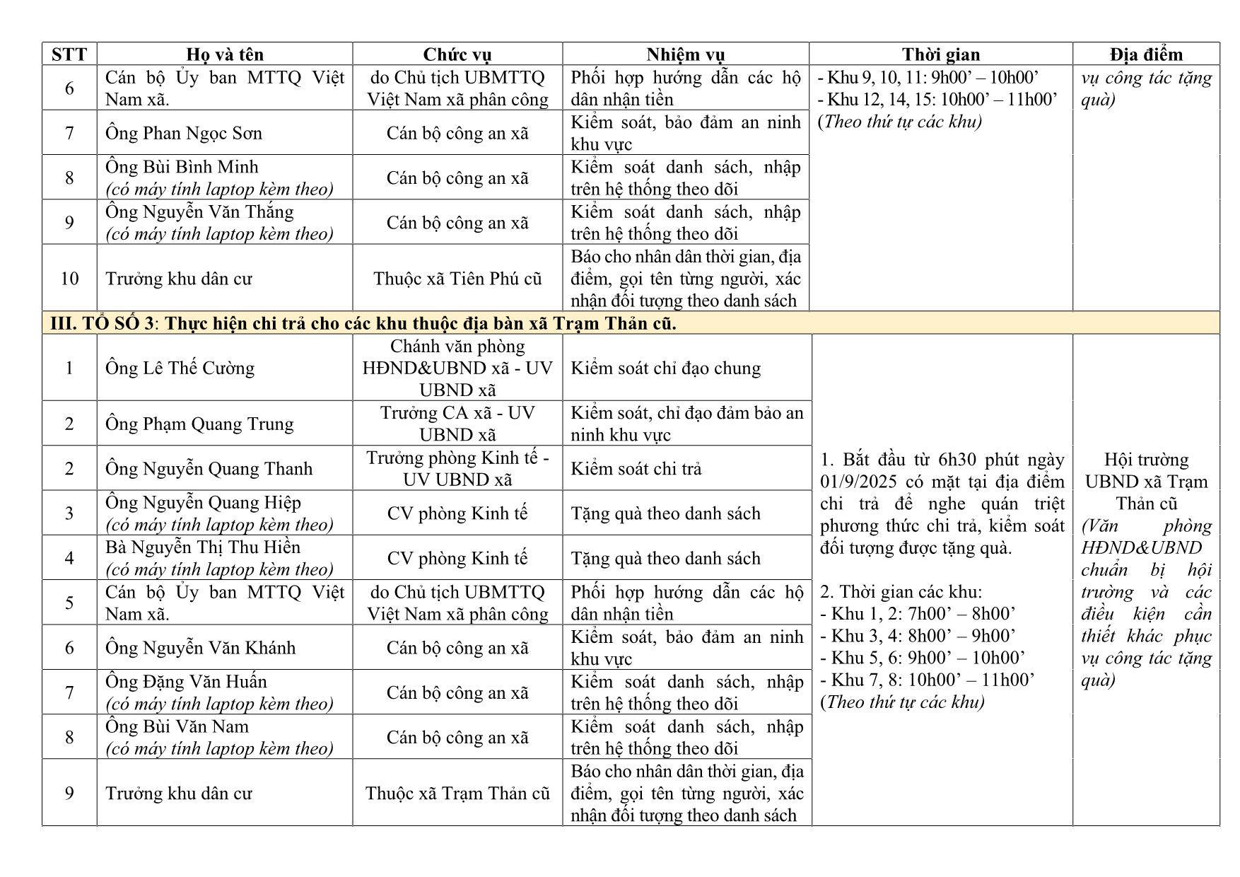 UBND xã Trạm Thản thông báo tên gọi các khu dân cư trên địa bàn xã Trạm Thản mới (bao gồm: xã Trạm Thản cũ, xã Tiên Phú cũ, xã Trung Giáp cũ)