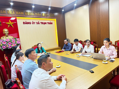 Dự hội nghị tại điểm cầu xã Trạm Thản có đồng chí Đào Thị Thanh Hồng – UV BTV Đảng ủy, Phó chủ tịch UBND và các thành phần liên quan.