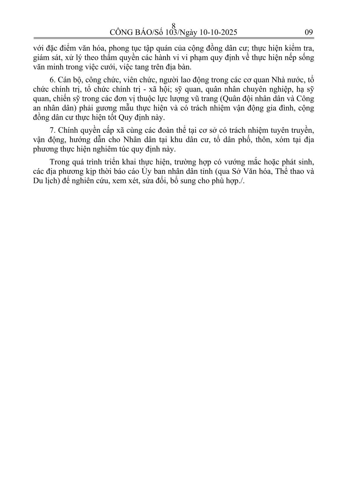 Quyết định này đã có hiệu lực kể từ ngày 22 tháng 10 năm 2025 và thay thế các Quyết định cũ. Đề nghị nhân dân xã Trạm Thản thực hiện nếp sống văn minh trong việc cưới việc tang cần phù hợp với quy định của UBND tỉnh.